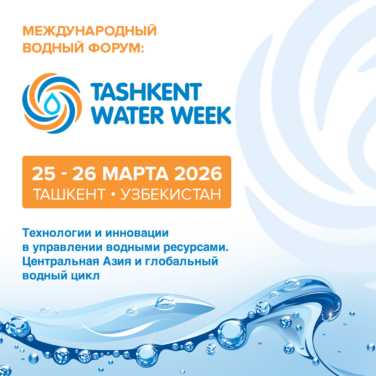 Tashkent Water Week 2026 объединит государственные органы, международные организации, ведущих ученых, бизнес и экспертное сообщество, предоставляя платформу для обсуждения трансграничных вызовов водной безопасности, демонстрации инновационных управленческих и технологических решений, а также выработки практических стратегий рационального использования водных ресурсов. Форум направлен на укрепление регионального сотрудничества и продвижение устойчивых моделей водопользования, что позволит обеспечить долгосрочное водное и экономическое развитие Центральной Азии.